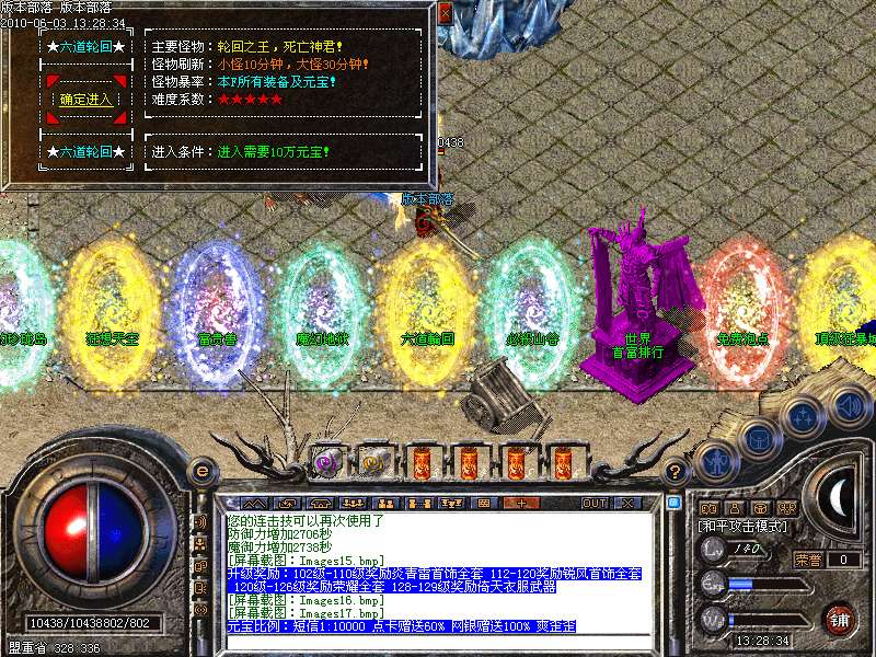 增加地图:顶级狂暴城,六道轮回(六层),狂想天空(四层),必杀山谷(四层)