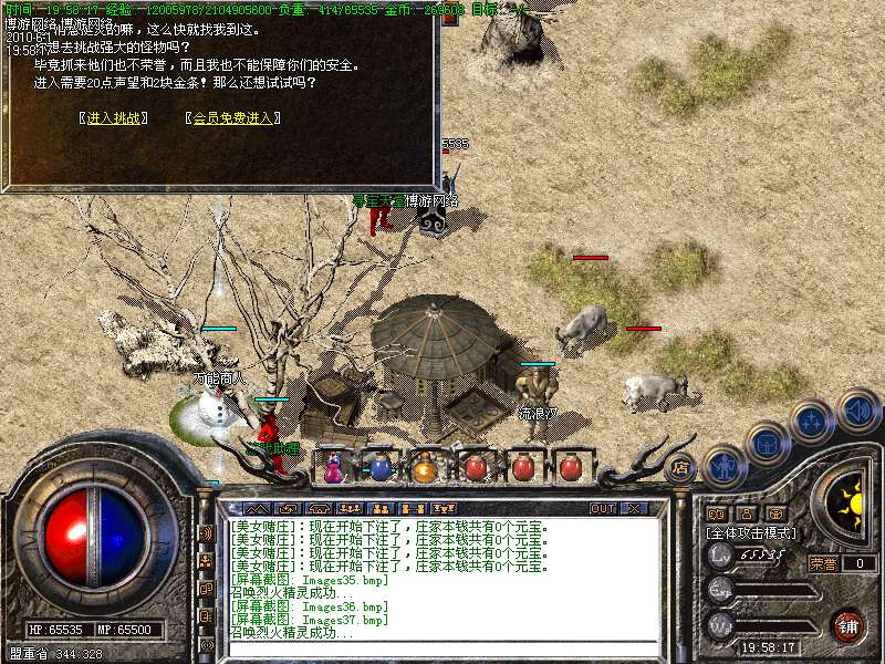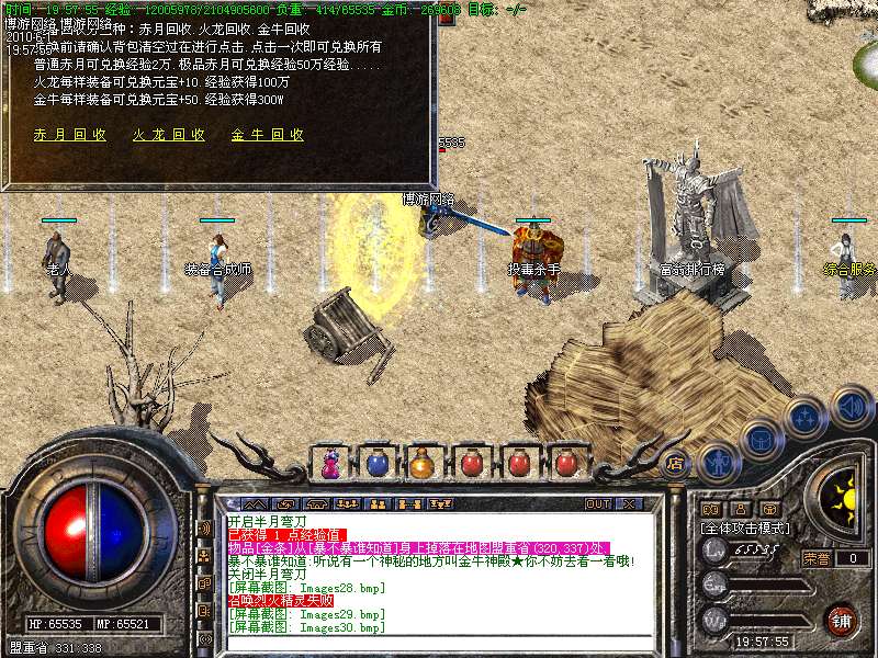 【装备回收】可回收玩家打出来的各种装备及各种新衣服.可以在土装备回收NPC那里换取经验和元宝.