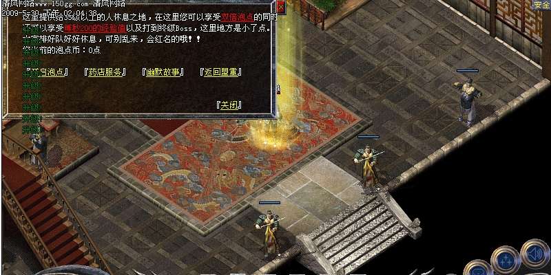 《招财进宝》 土城杂货店下招财进宝NPC传送进入 怪物:招财魔王、黄金卫士、招财将军、招财刀客、招财小白、招财宝箱。可以掉落狂雷、王者、青龙、炎龙、雷龙,