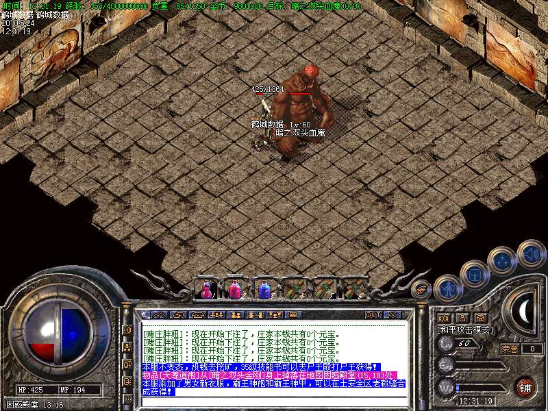本服不变态,没钱去挖矿,35级技能书可以去尸王殿打尸王获得!