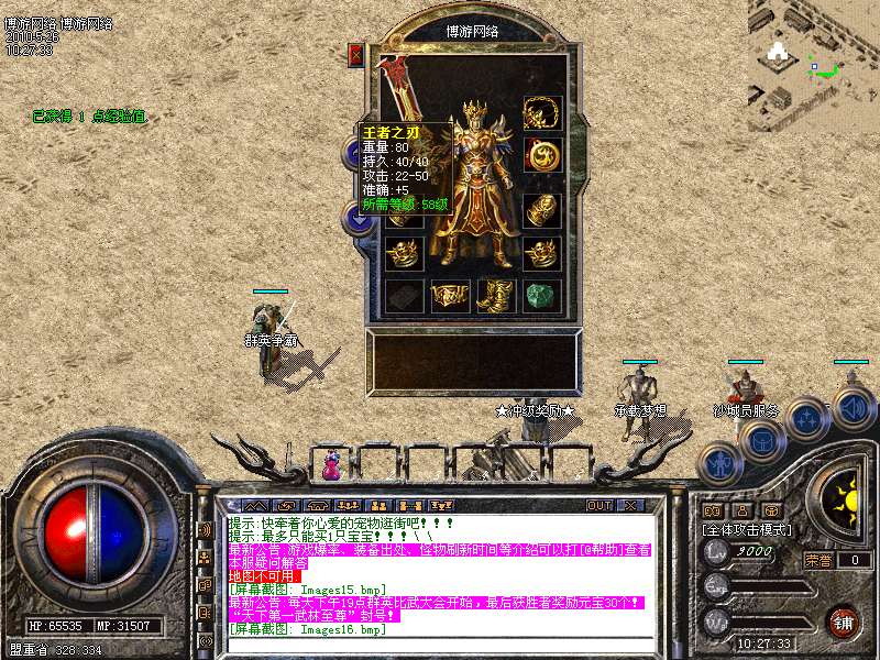 10:本服开通短信业务,方便小面额元宝充值!"贵族"金牌帐号功能强大:打宝-PK之捷径!右下角商铺处购买!