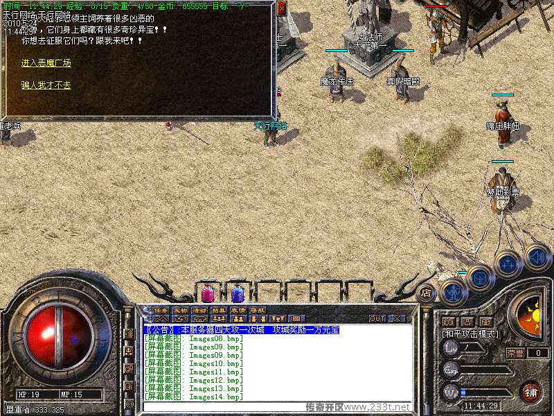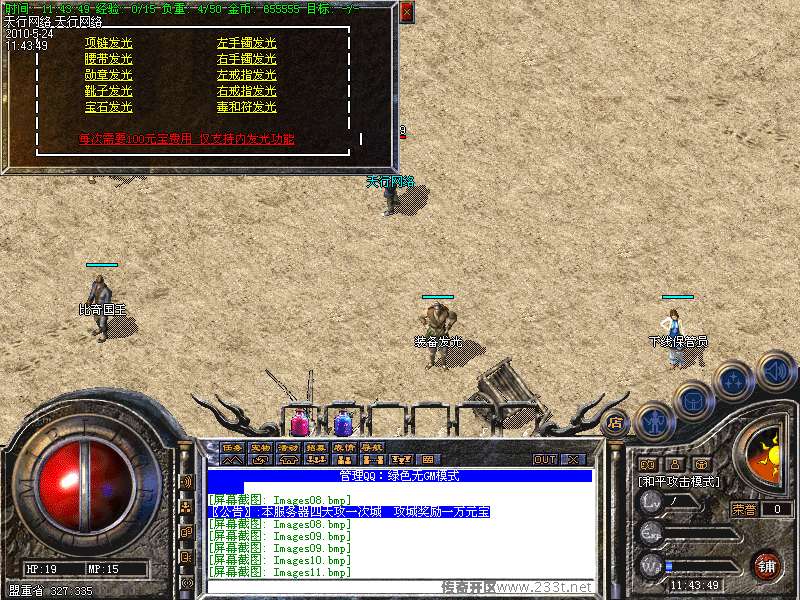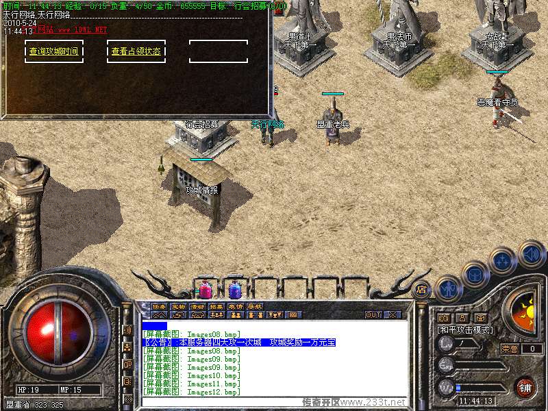 【怪物增加】土城药店每12小时刷新一只BOOS爆怪物攻城令牌1/1,封魔皇宫每12小时刷新一只BOOS爆终极武器爆率为5/1.