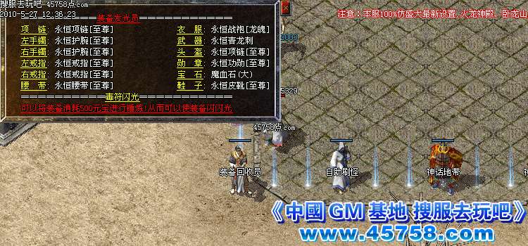 6.独家装备合成系统 可将永恒装备合成永恒至尊! 成功率100% 想成为至尊中的至尊那就快来合成吧