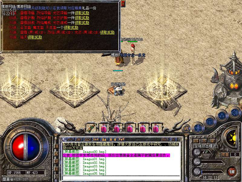 号角爆率1/1 沃玛教主每30分钟刷一次,开区后3天千人统一攻城战.沙城主奖励28888元宝!让你重新感受盛大千人攻城乐趣!