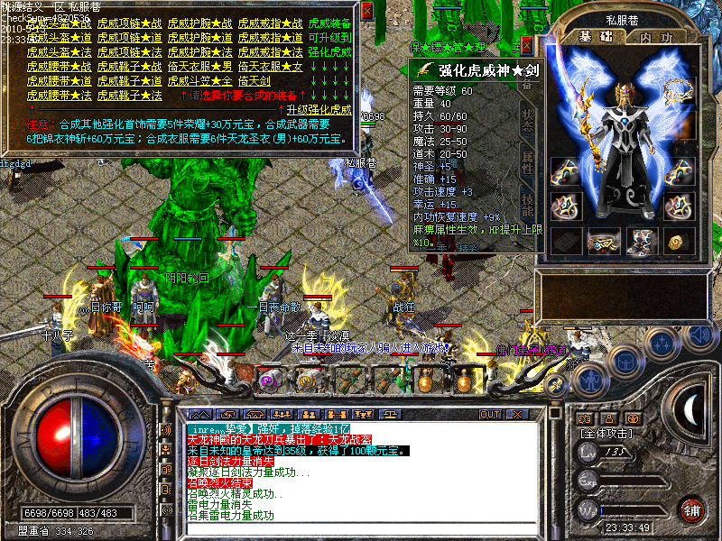 装备采用盛大模式,终级装备为虎威套装+倚天剑+倚天衣服。