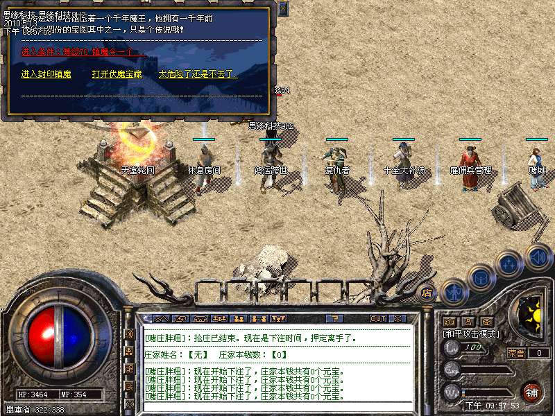 c.升到70级进入镇魔神石,爆全服所有装备!