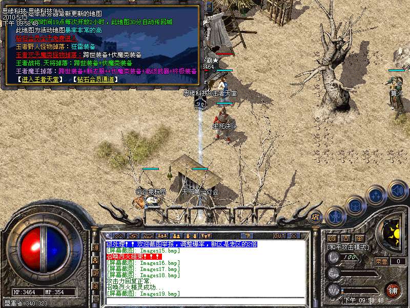 4.增加天堂之路地图脚本,此地图任务脚本前五层闯关地图,第六层汇集全服所有BOSS