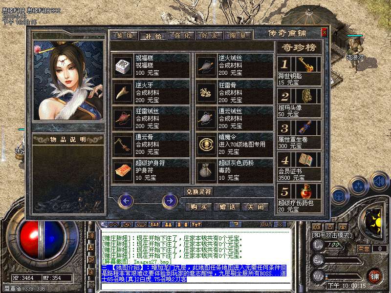 9.元宝爆率: 所有刷新BOSS的地图均有守护神存在.例如沃玛大殿也有!特为散人研发