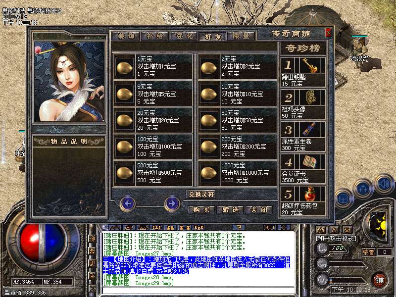 5.更新地图:天堂之路.龙门阵九层.镇魔神石.神秘之地.更多精彩.宝藏等待你去开启.