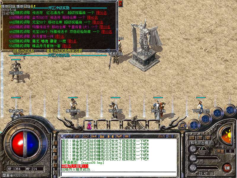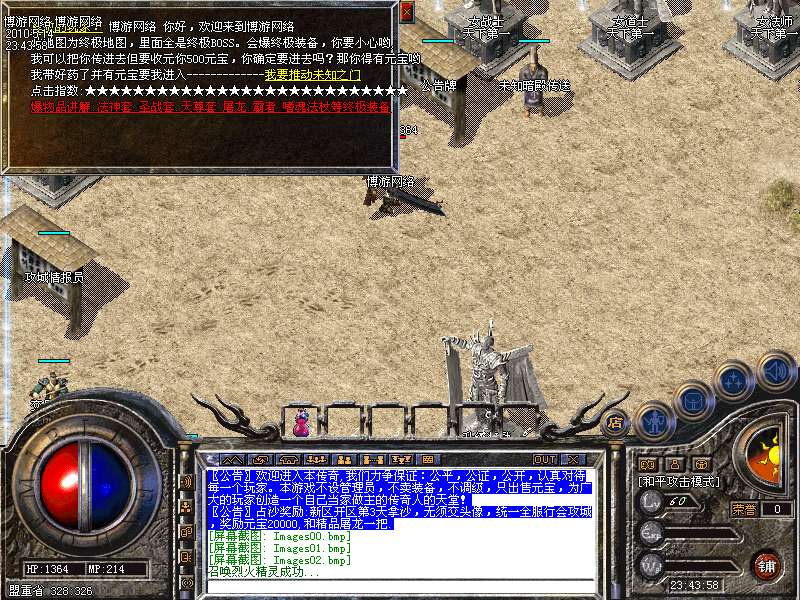 号角爆率1/1 沃玛教主每30分钟刷一次,开区后3天千人统一攻城战.沙城主奖励28888元宝!让你重新感受盛大千人攻城乐趣!