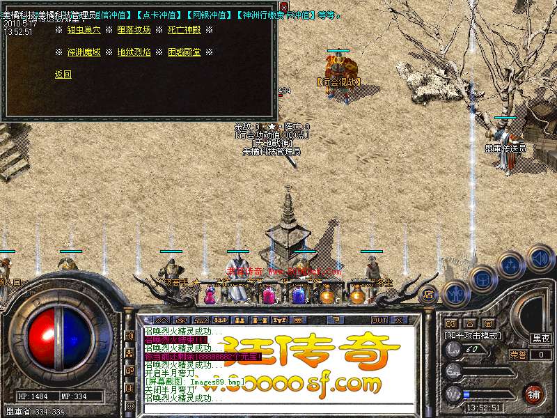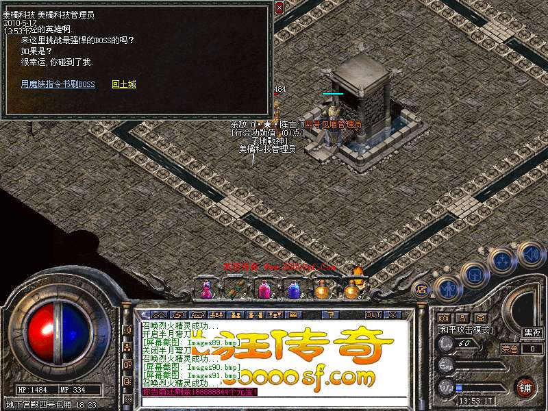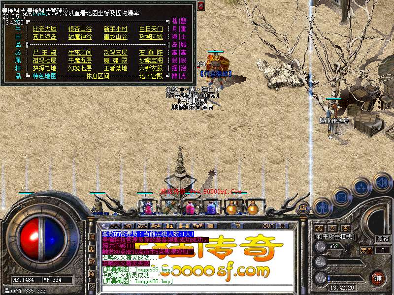 全国唯一的复古版本,唯一不用元宝就可以进入玛雅地图的游戏!真正的公平游戏``在盟重土城药店处会出现石墓尸王,只要您消灭掉就可以直接送您到玛雅神殿.出怪时间为90分中``就是说90分中才可以免费进入一次``