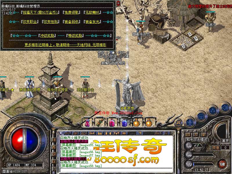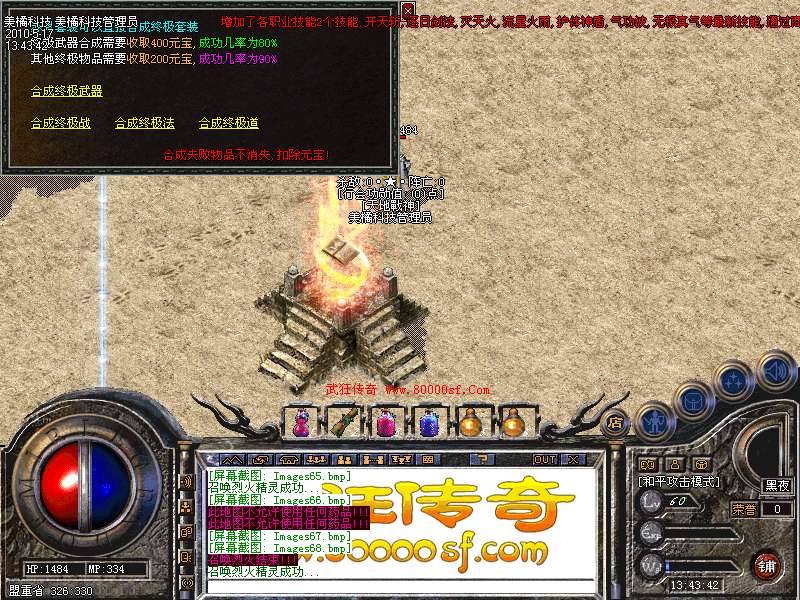 增加了3套时尚的装备,新加装备可以使用赤月装备完美合成,增加了沙城专用武器,此武器需要攻城后联系管理员获得!