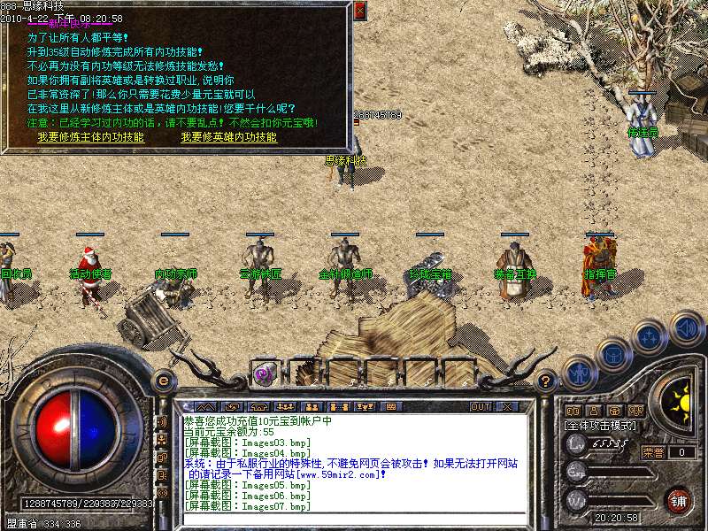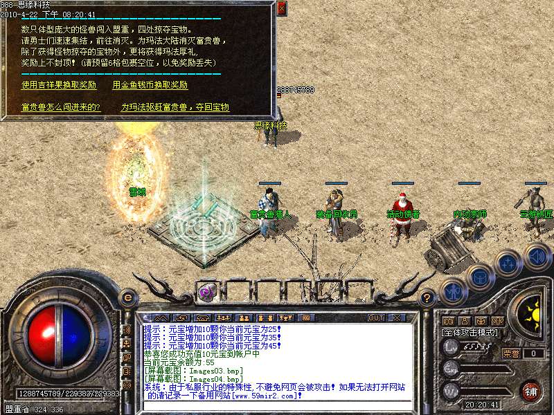 虎威2010年巨献—2.0316虎威双连击版-纵横,加入沙巴克行会押镖系统,四级技能,必杀斗笠,必杀面巾,强化神兽 盛大副将 地图,装备采用全新盛大装备,高额元宝升级奖励, 不断刺激玩家练级激情,此版本是骨灰级玩家首选..