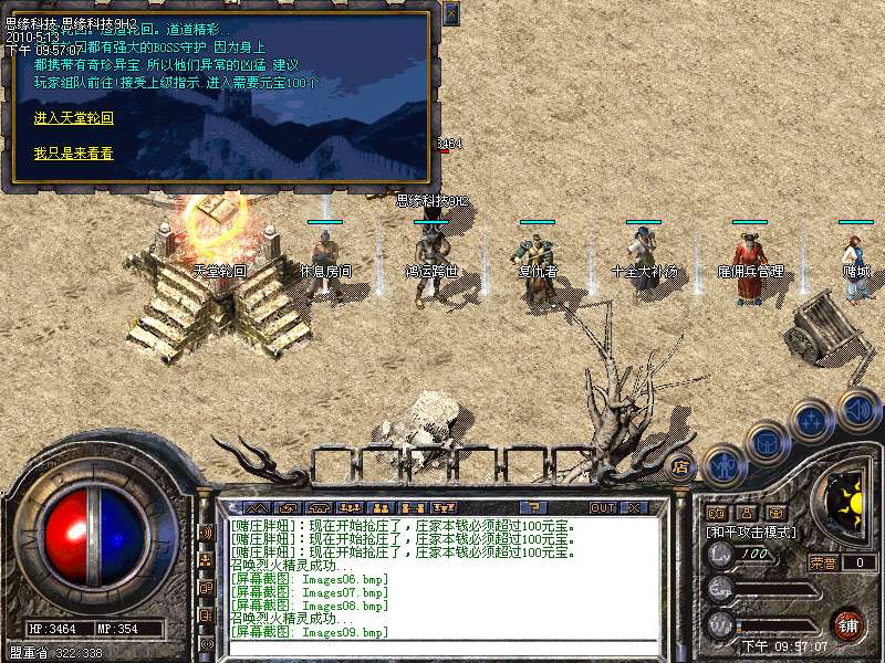 4.增加天堂之路地图脚本,此地图任务脚本前五层闯关地图,第六层汇集全服所有BOSS