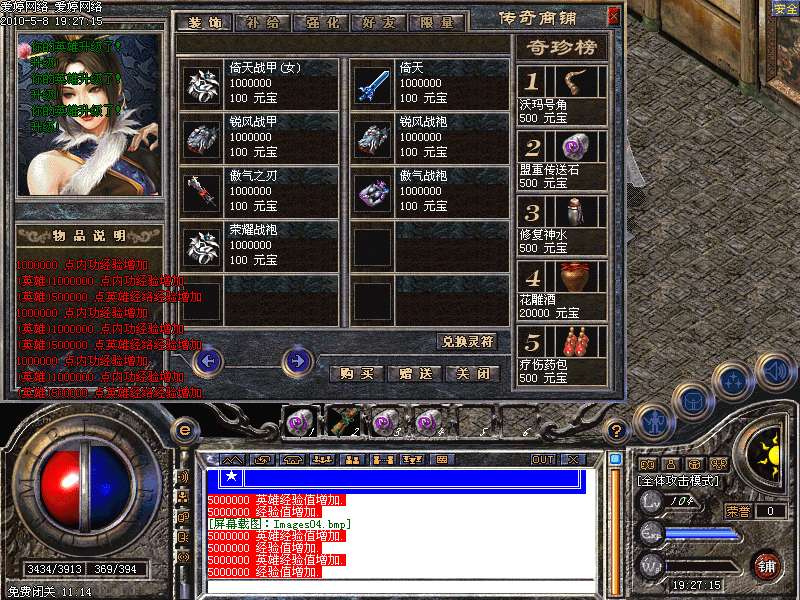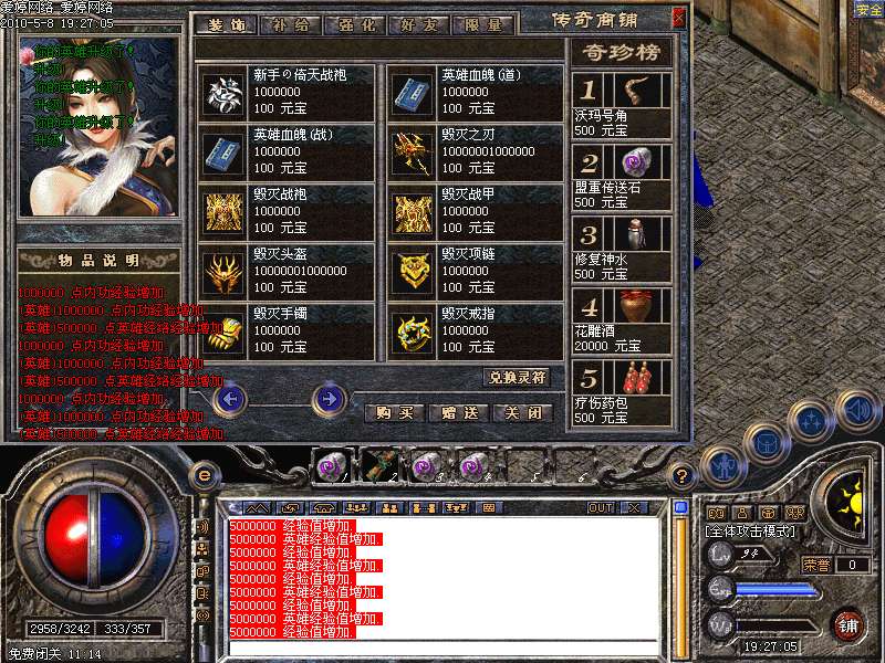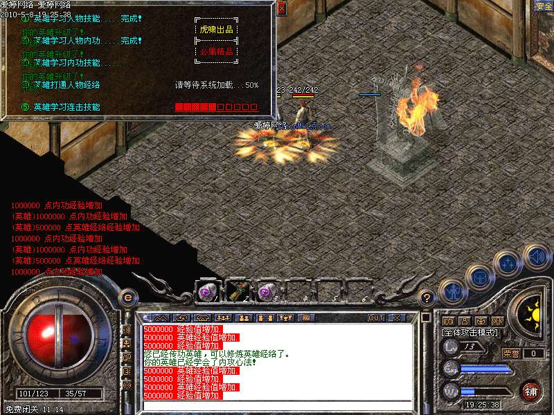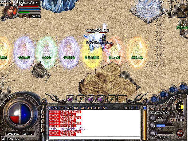 激情殿堂:每秒1200万经验200万内功经验!(可PK区域,可挂到本服顶级200级,内功255级)