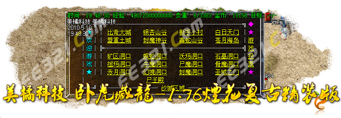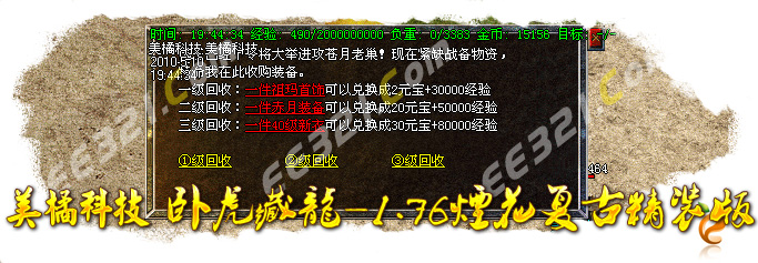 提示:本服务器高级怪物30分钟刷新,沙宝阁怪物60分钟刷新,新衣服暴率为1/100,赤月首饰暴率为1/20,苍月武器1/100。武器最高可升级7点,5分钟可取。赤月恶魔暴屠龙嗜魂,地藏王宝霸者之刃!