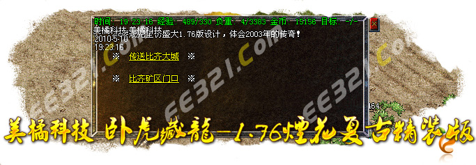 〖公告〗:服务器保证每位玩家的利益,服务器承诺不会为玩家刷任何装备和属性点。一切装备靠打,假如果你觉别人一个人打你4家人,就说GM帮他调属性你可以离开,人家PK用的是太阳包,攻击药水。你用上以后也会出来这种感觉