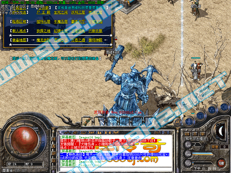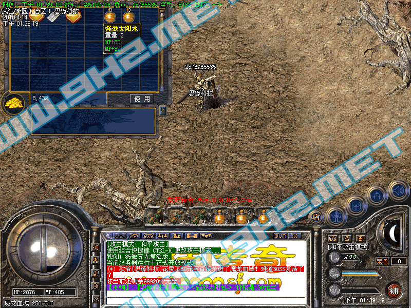 六.【特殊刷新】用魔法神石在土药旁边的魔法结阵可召唤出蚩尤.使用魔法神石召唤的同时可获得丰富的奖品.包括炎龙刃 致命2套装卷 傲皇首饰及武士神石 合成仙丹