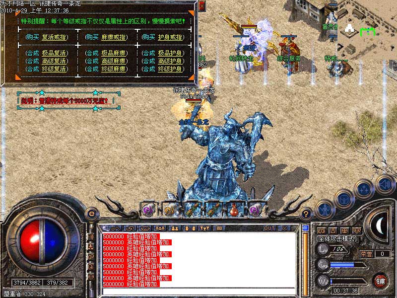 激情殿堂:每秒1200万经验200万内功经验!(可PK区域,可挂到本服顶级200级,内功255级)