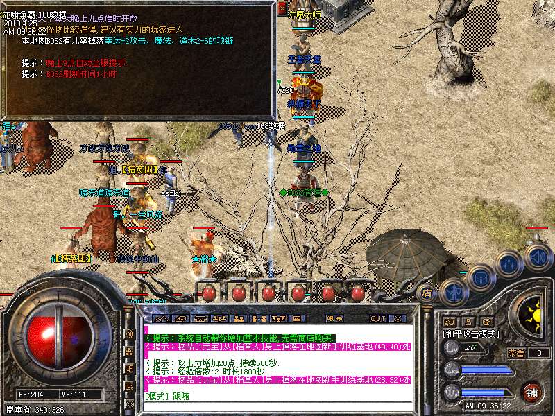 【BOSS攻城】服务器每过5小时自动怪物攻城.每次攻城10分钟`5波`10只BOSS,装备暴率十分的可观