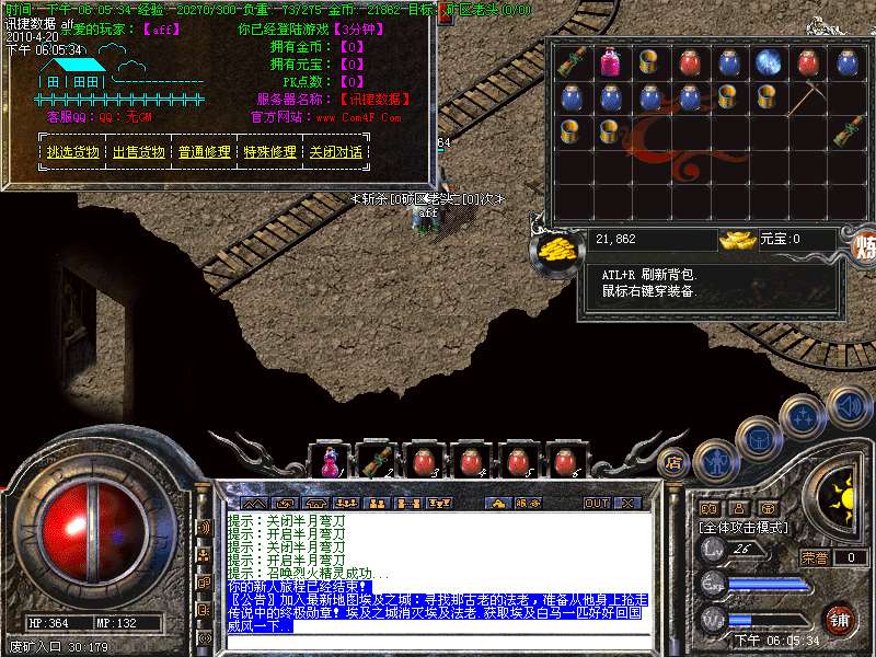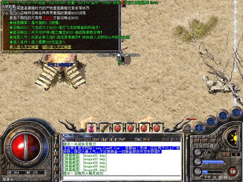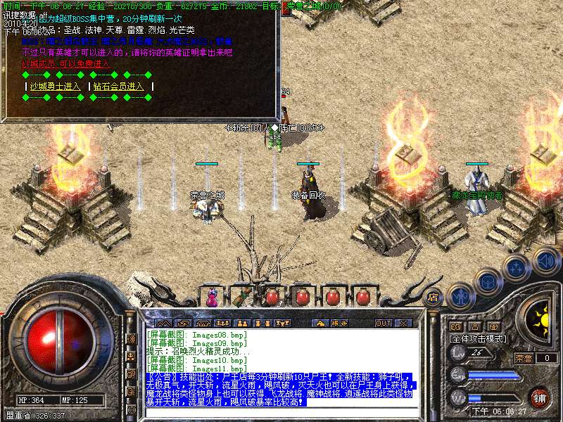 服务器暗之轮回教主,每天刷新四次,暴开天类武器机率非常的高喔!!!