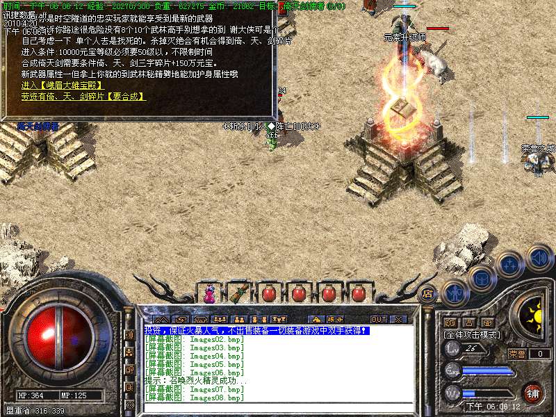 服务器开放了装备合成功能,可以拿中级装备合成高级装备,详细介绍见土城左下角NPC!