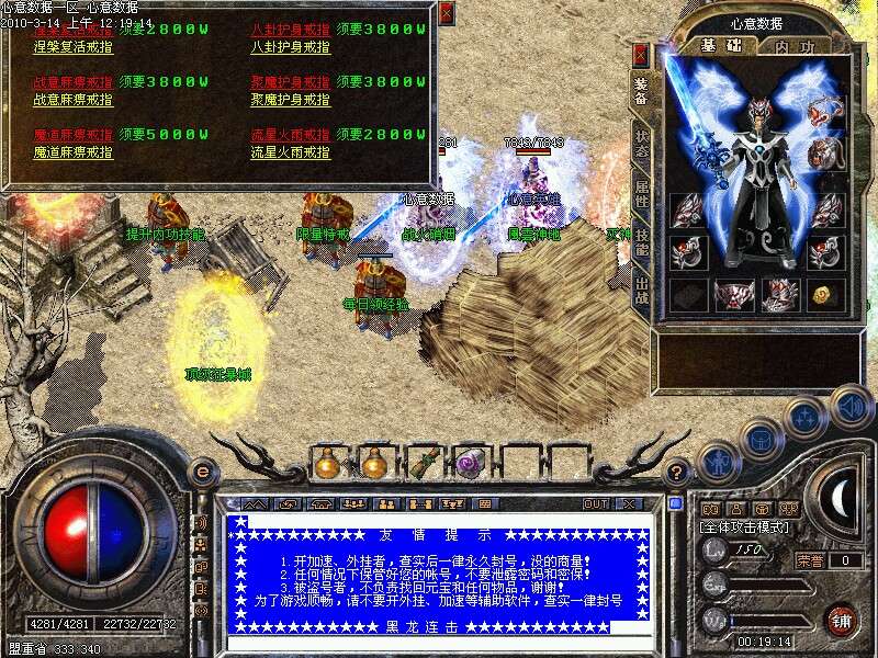 【重宝地图】本服务端特为广大GM增加目前最流行的地图 <众神归来>:此地图爆出炎龙,青龙,雷龙等装备 <万劫魔宅> :,荣耀,倚天等 <四级密室>: 此地图最新的四级技能