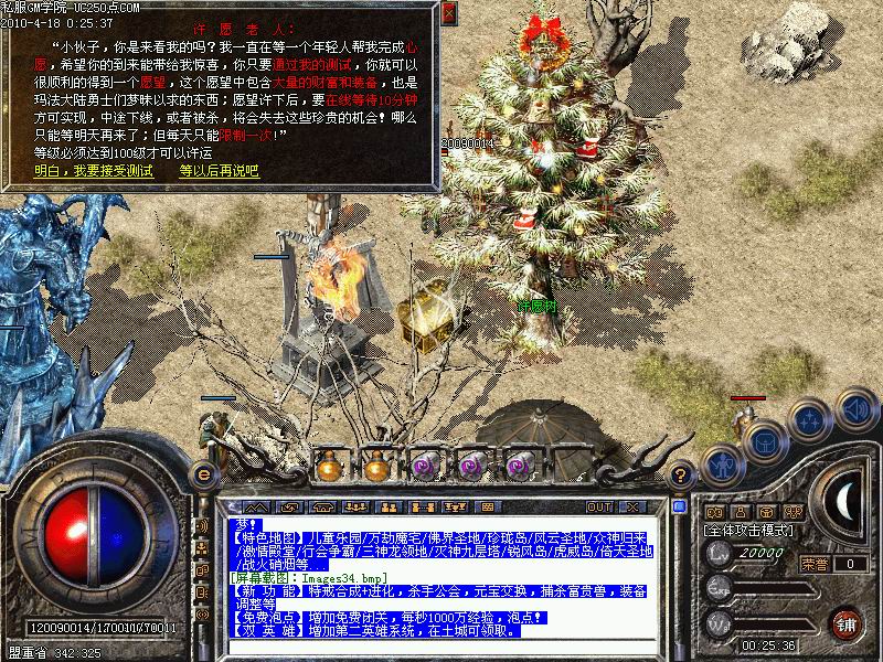 【特色地图】儿童乐园/万劫魔宅/佛界圣地/珍珑岛/风云圣地/众神归来/激情殿堂/行会争霸/三神龙领地/灭神九层塔/锐风岛/虎威岛/倚天圣地/战火硝烟等.许愿系统NPC为圣诞树