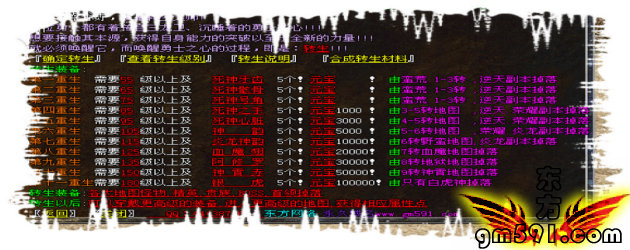 全新的修行历练之路,龙卫的风采在当代勇士的身上,也许真的要渐渐展现出来了。 转生:可以佩戴更高级的装备,挑战更