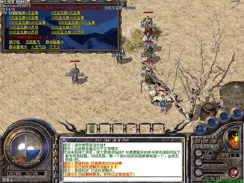 (3)新功能NPC请到游戏里白日门查看(4)增加金刚石功能:用法基本和元宝相同。 (5)各个大BOSS和青蛙洞有金刚石可以爆出!!