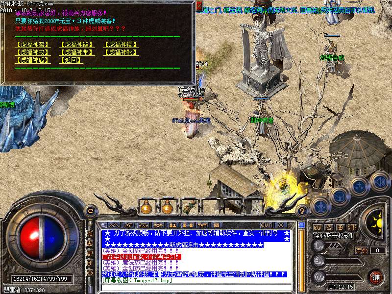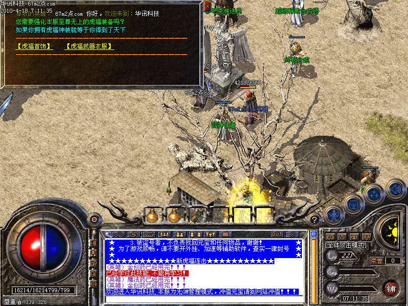 神虎2010年巨献—2.0316神虎-神虎双连击版-神虎,加入沙巴克行会押镖系统,四级技能,必杀斗笠,必杀面巾,强化神兽 盛大副将 地图,装备采用全新盛大装备,高额元宝升级奖励, 不断刺激玩家练级**,此版本是骨灰级玩家首选..