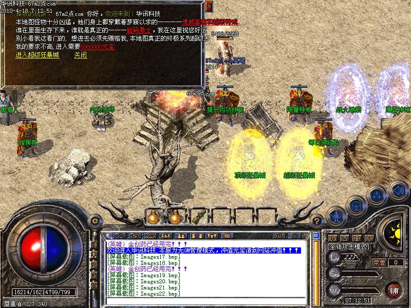 【重宝地图】本服务端特为广大GM增加目前最流行的地图 <众神归来>:此地图爆出炎龙,青龙,雷龙等装备 <万劫魔宅> :,荣耀,倚天等 <四级密室>: 此地图最新的四级技能