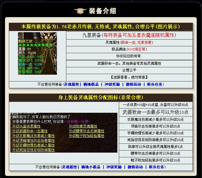 【九星装备,极品满地】 【个性商铺】 【赌博系统】 【装备回收】 【冲级奖励】