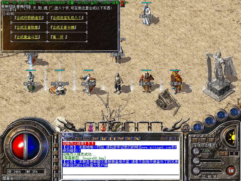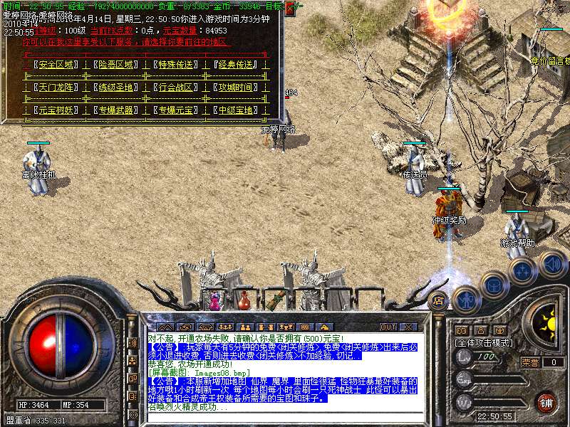 20.本服新增加地图 仙界 魔界 里面怪很猛 怪物狂暴最好装备的地方哦1小时刷新一次 每个地图每小时会刷一只死神战士 此怪可以暴出好装备和合成帝王权装备所需要的宝图和珠子。