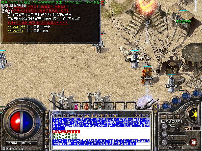 12 【魔法结阵】:收集到魔法神石后,可投入魔法结阵内,系统提示某某(玩家名字)玩家启动魔法阵,结阵威力增加一层,并获得结阵的祝福,当结阵威力增加到10层的时候,魔法阵威力将会完全释放,并召唤出最一路的BOSS级怪物。