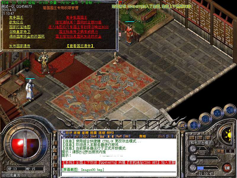 3.国王可任意输入玩家名字给玩家 赦免红名,发放救济钱,召唤2只随身侍卫,独立的国家打宝地图,消耗军事力量,政治能力点来随意召唤BOSS供给国家国