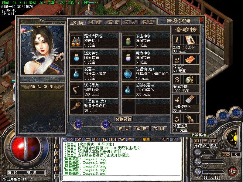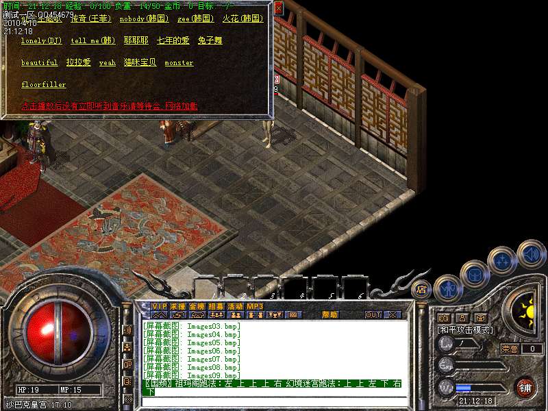 7.本服设有VIP,在线MP3,等等功能玩家可在线听音乐玩游戏,PK时可点播DJ来处性。