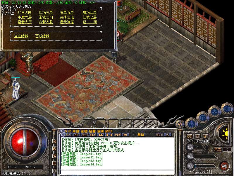 5.生死对战活动,活动时间到了,系统会全服提示,玩家根据屏幕上的活动按扭,选择相关的活动而参加,进入时是进入统一一个地图休息间安全区域,当时间