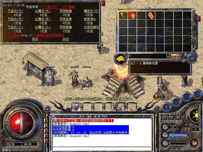 在盟重公告栏中有个传送是收费的,指收金币,不高2000一次,还有个玛珐古墓,里面出没了各大BOSS,秒卡能量地图,扣费为双倍每秒。其中盟重老兵处可以进入幻境,幻境1-6层是正常扣费7-10层为扣双倍为盛大一样模式,显示计时方面全国首创!