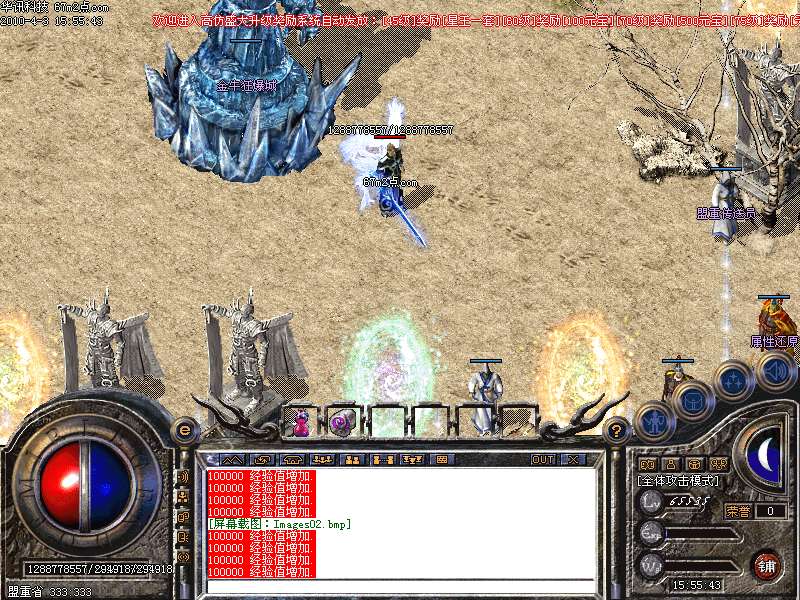 服务器开区第三天晚上攻沙,奖励80W元宝,以后每次攻完沙后城主奖励40W元宝,老区天天攻沙!!!