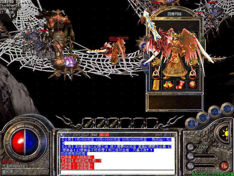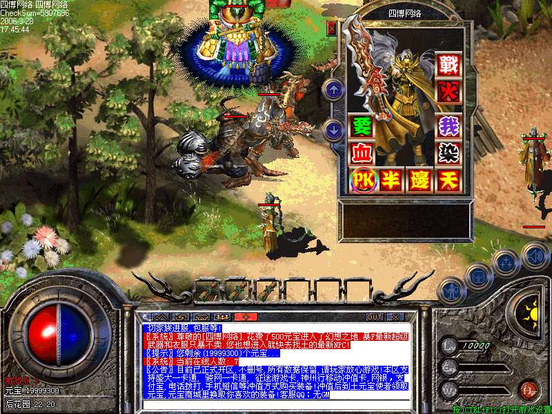 器打怪经验为盛大的一万倍,爆率为100倍!400级高级套装在变态地图内可以爆出