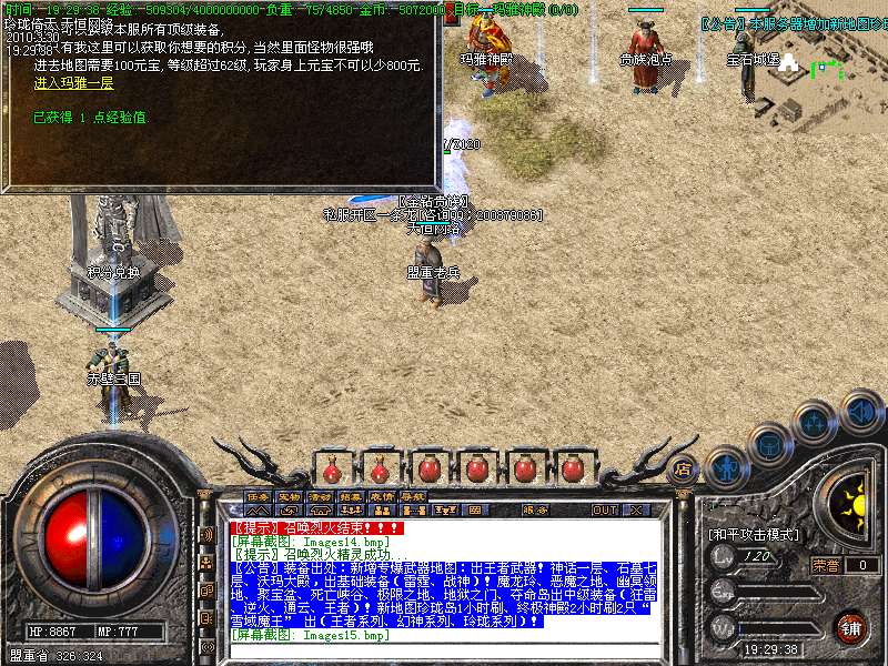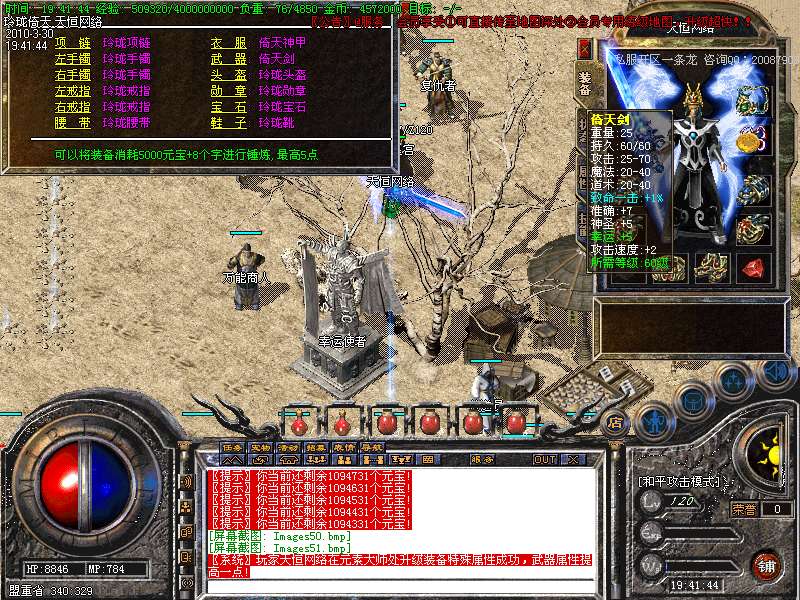 7、元宝可在元宝神龙身上必爆100和打装备在土城NPC高级服务<装备回收>获得。