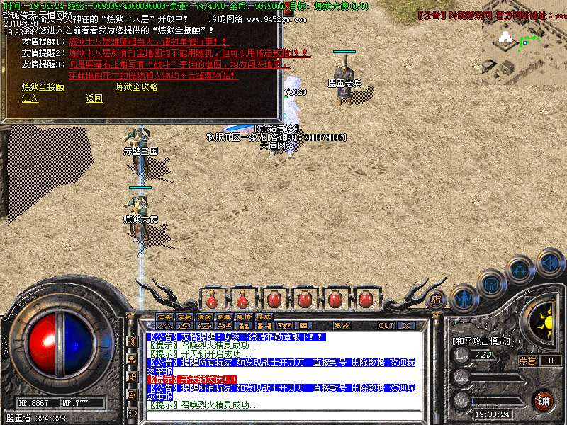 - ☉ V8引擎传奇端游【荒域专属单职业九大陆】Win一键端+配套补丁网站+架设教程