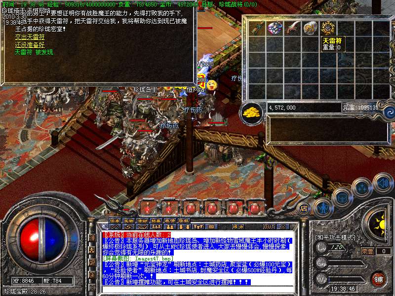 3、中级装备狂雷、逆火、通云、王者系列装备在 夺命岛、聚宝盆等BOSS有爆,爆率一般 。