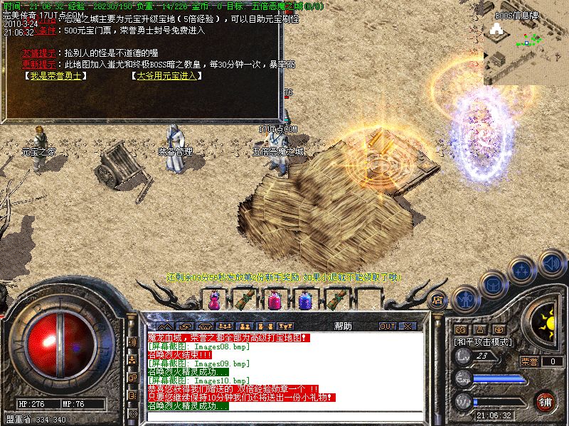 【地图介绍】:增加荣誉之都,刷新全服所有高级BOSS,刷新快,需要英雄证明进入,是兵家必挣之地,沙城员可以免费进入,英雄证明在六大暗之BOSS身上可以获得!