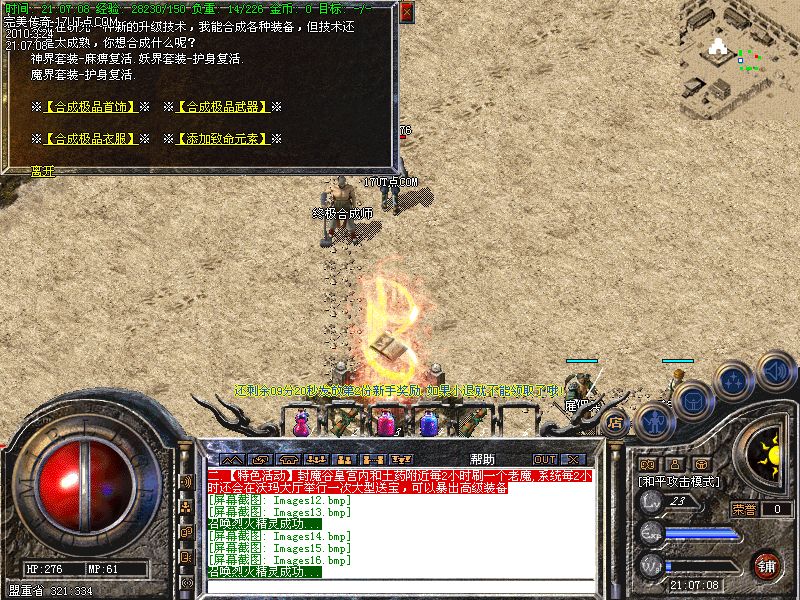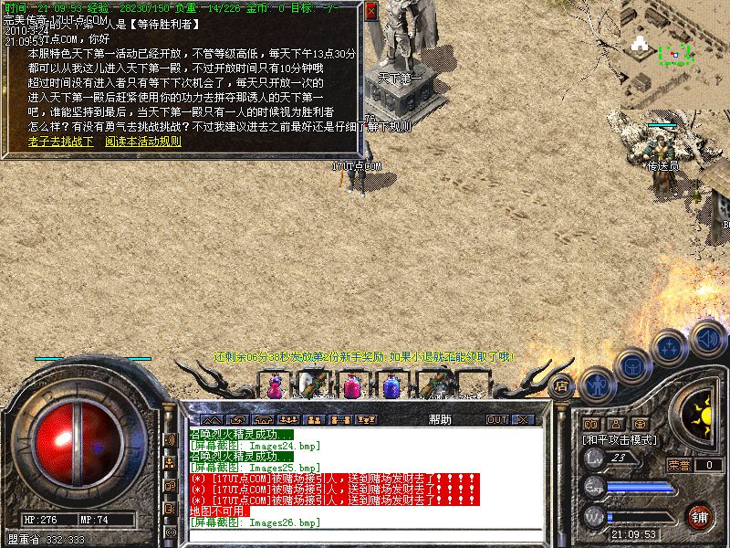 【地图介绍】:增加新BOSS,暗之烟花教主60分钟一只,刷新地图:荣誉之都 烟花秘穴,烟花秘穴需要放九株连环炮随机进入!