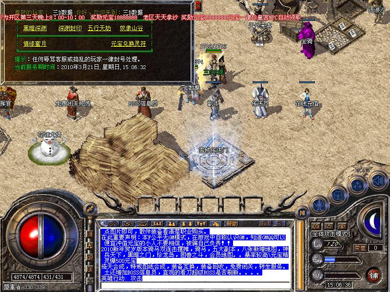 2010新年贺岁版本骑马双连击摆摊,骑马,五大副本,八张新增地图,神兵天下,黑暗之门,珍龙岛,困兽之斗,会员地图。。暴率较高元宝精灵爆500元宝