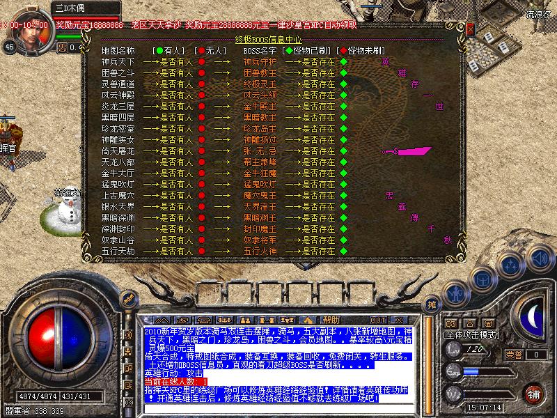 [255,56]倚天合成,特戒图纸合成,装备互换,装备回收,免费闭关,转生服务。土还增加BOSS信息员,直观的看刀超级BOSS是否刷新。。。。