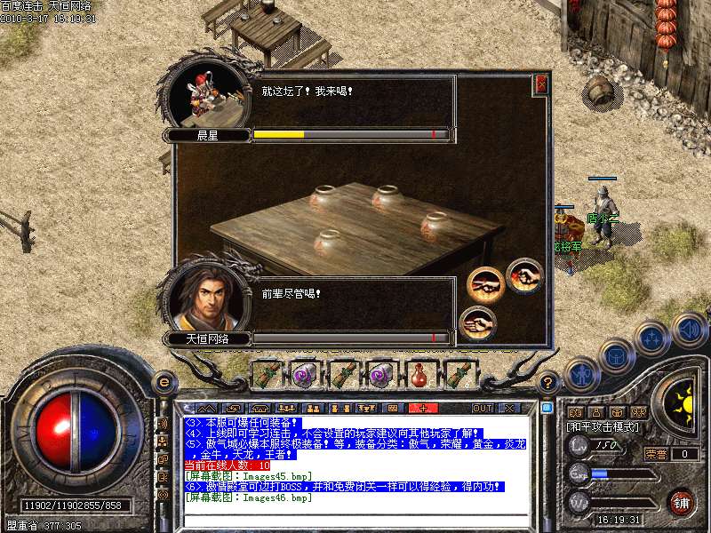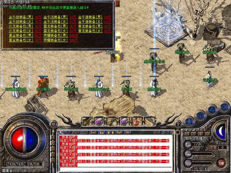 打初中级装备,另外进入本地图可和免费闭关一样自动获得100万经验和内功经验!