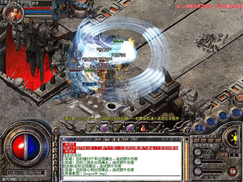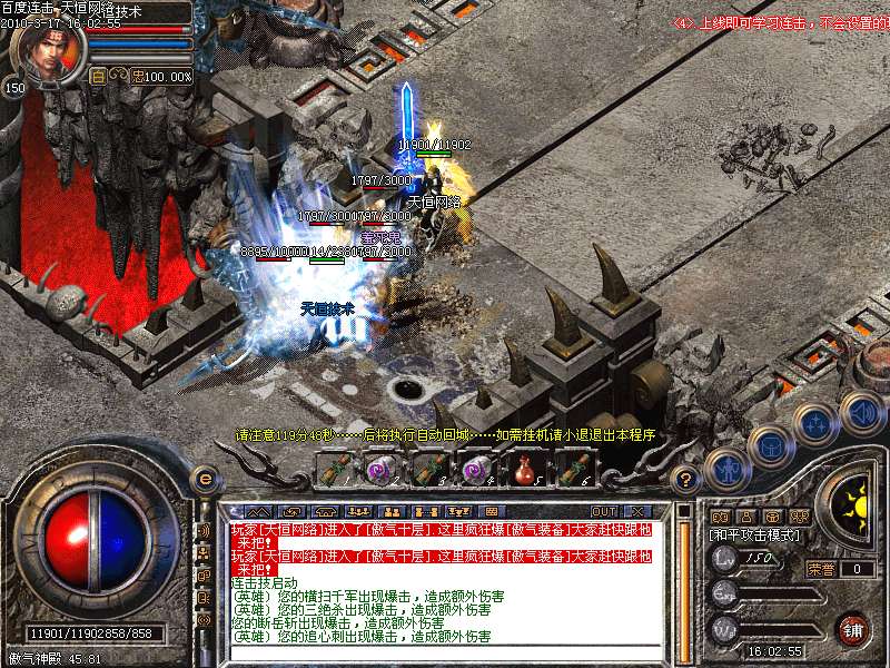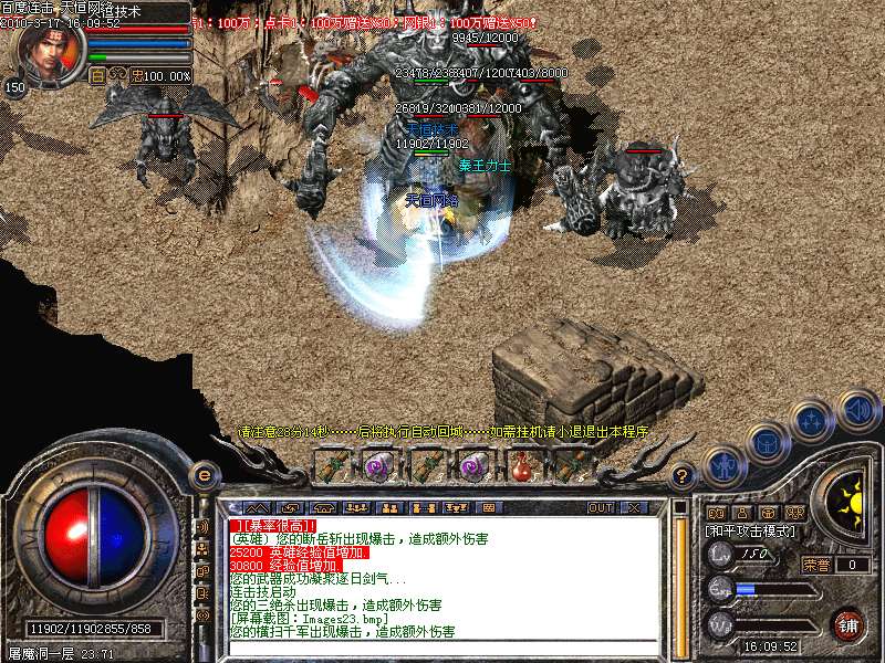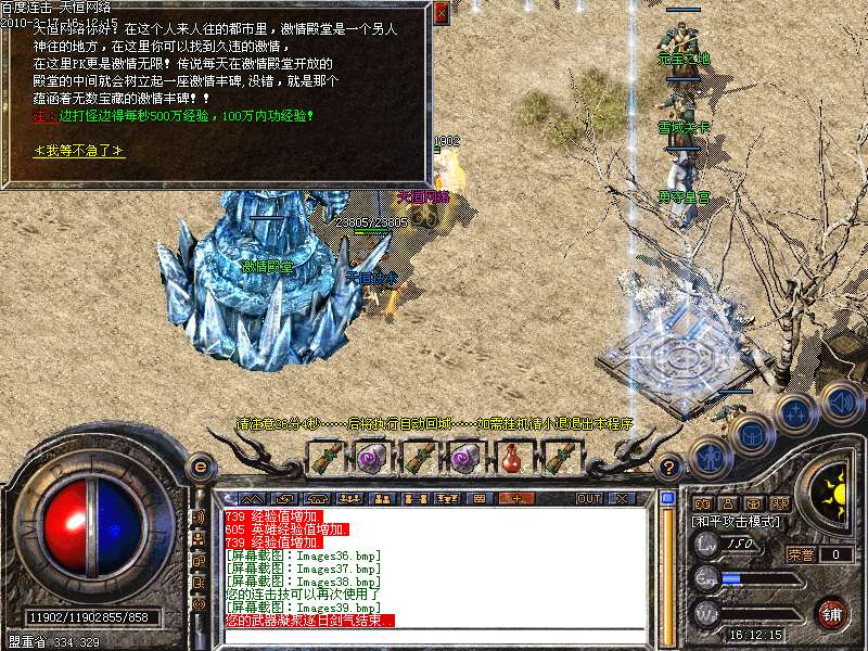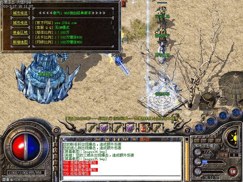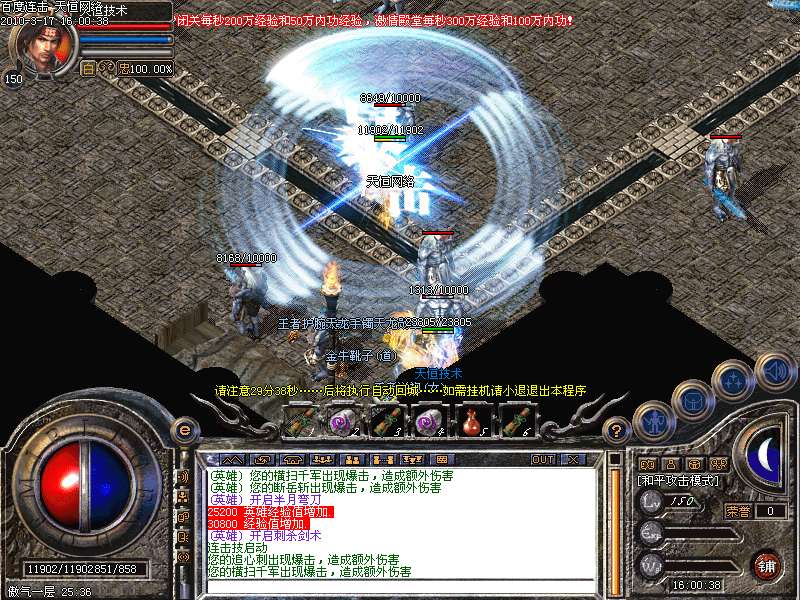 每秒100万经验 100万内功 双得哦!非RMB玩家的需求!